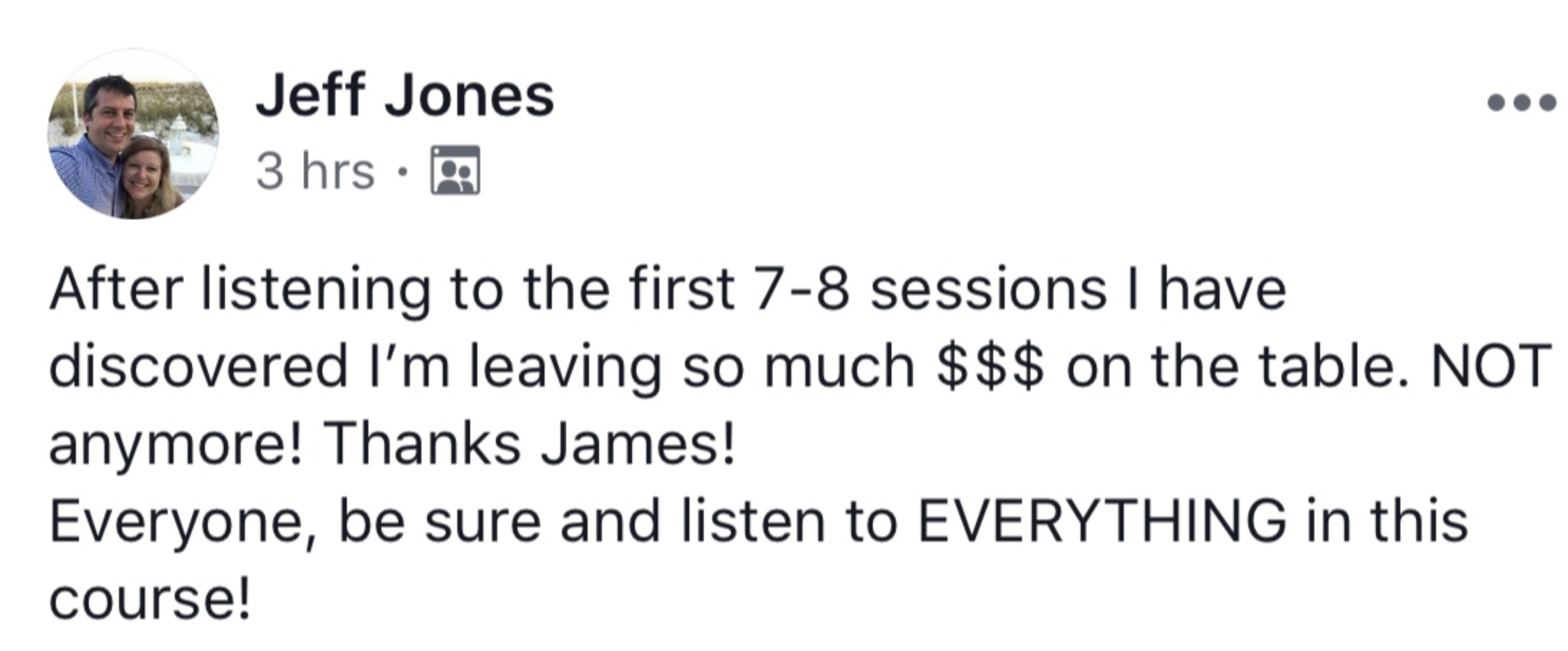 From James I learned so much about marketing, speaking, business and how to get your message out there
